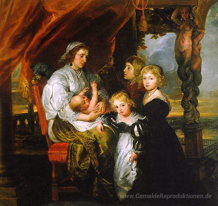 Wir bieten Ihnen eine handgefertigte Reproduktion auf Leinwand des berühmten Kunstwerks 'Deborah Kip, Ehefrau von Sir Balthasar Gerbier, und ihre Kinder' von Peter Paul Rubens, aus dem Reproduktionsmuseum.
