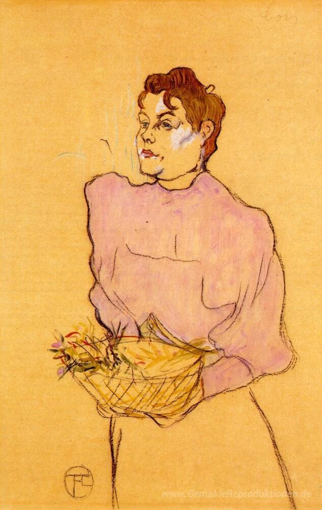 Wir bieten Ihnen eine handgefertigte Reproduktion auf Leinwand des berühmten Kunstwerks 'Der Blumen-Verkäufer' von Henri de Toulouse-Lautrec, aus dem Reproduktionsmuseum.