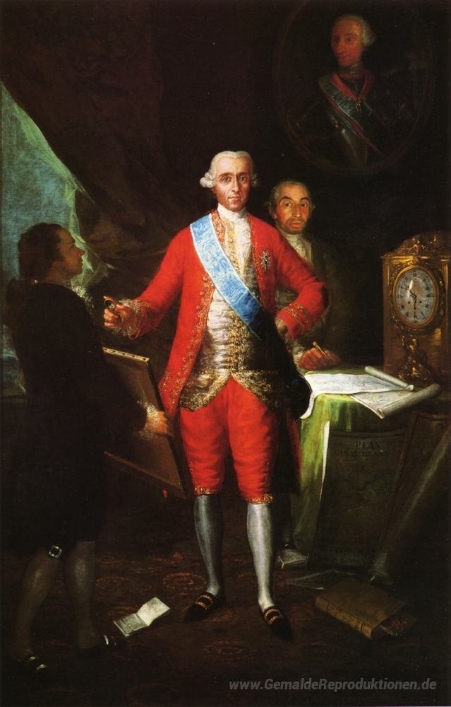 Wir bieten Ihnen eine handgefertigte Reproduktion auf Leinwand des berühmten Kunstwerks 'Der Graf von Floridablanca' von Francisco Goya, aus dem Reproduktionsmuseum.
