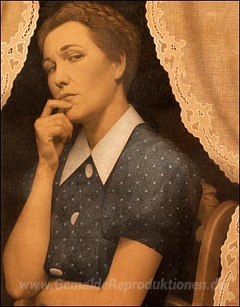 Wir bieten Ihnen eine handgefertigte Reproduktion auf Leinwand des berühmten Kunstwerks 'Der Perfektionist' von Grant Wood, aus dem Reproduktionsmuseum.