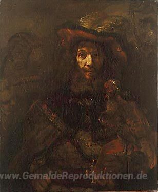 Wir bieten Ihnen eine handgefertigte Reproduktion auf Leinwand des berühmten Kunstwerks 'Der Ritter mit dem Falcon' von Rembrandt, aus dem Reproduktionsmuseum.