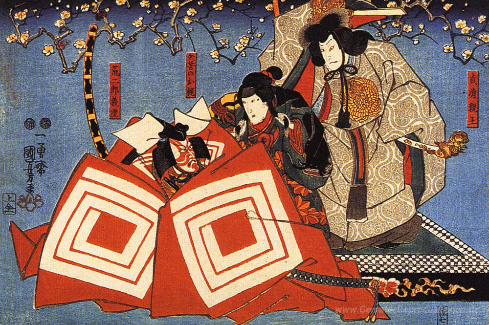 Die Verwendung reichhaltiger Farben und komplexer Kompositionen verleiht Der Schauspieler eine unvergleichliche Präsenz, die jedem Raum eine besondere Atmosphäre verleiht. Die floralen und dramatischen Elemente, die Kunstwerke wie dieses repräsentieren, harmonieren perfekt mit modernen und klassischen Innenräumen und verwandeln Ihre Wände in lebendige Geschichten. Lassen Sie sich von der zeitlosen Anziehungskraft und dem Ausdruck von Utagawa Kuniyoshi inspirieren und bringen Sie ein Stück Kunstgeschichte in Ihr Zuhause.