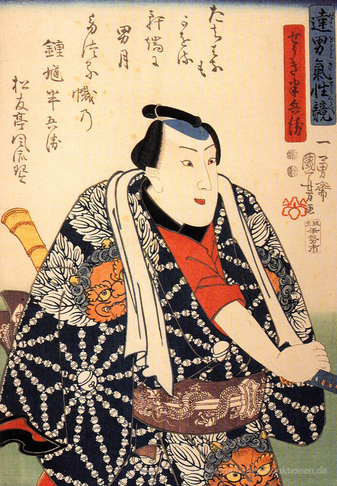 Wir bieten Ihnen eine handgefertigte Reproduktion auf Leinwand des berühmten Kunstwerks 'Der Schauspieler' von Utagawa Kuniyoshi, aus dem Reproduktionsmuseum.
