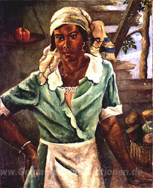 Wir bieten Ihnen eine handgefertigte Reproduktion auf Leinwand des berühmten Kunstwerks 'Der Verkäufer' von Albert Huie, aus dem Reproduktionsmuseum.