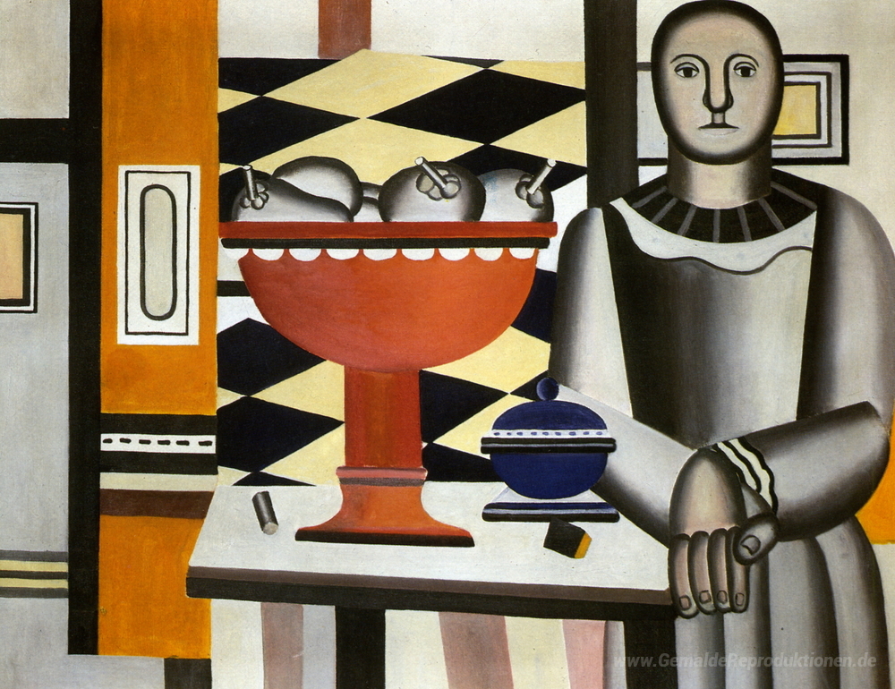 Wir bieten Ihnen eine handgefertigte Reproduktion auf Leinwand des berühmten Kunstwerks 'Die Frau mit dem Fruchtschale' von Fernand Leger, aus dem Reproduktionsmuseum.