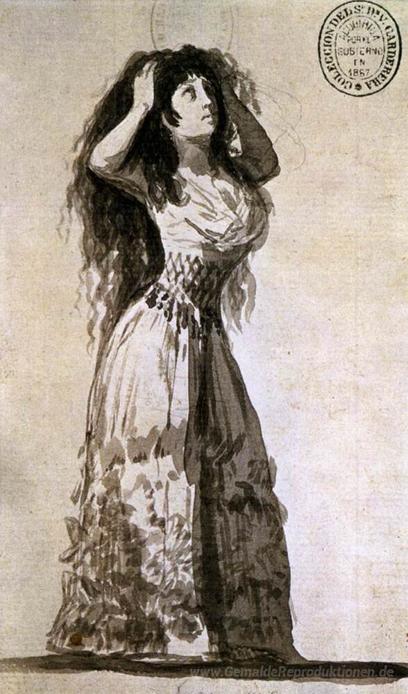 Wir bieten Ihnen eine handgefertigte Reproduktion auf Leinwand des berühmten Kunstwerks 'Die Herzogin von Alba, Arrangieren, ihr Haar' von Francisco Goya, aus dem Reproduktionsmuseum.