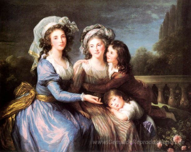 Wir bieten Ihnen eine handgefertigte Reproduktion auf Leinwand des berühmten Kunstwerks 'Die Marquise de Pezay, und die Marquise de Rougé mit ihren Söhne' von Louise Elisabeth Vigee Le Brun, aus dem Reproduktionsmuseum.