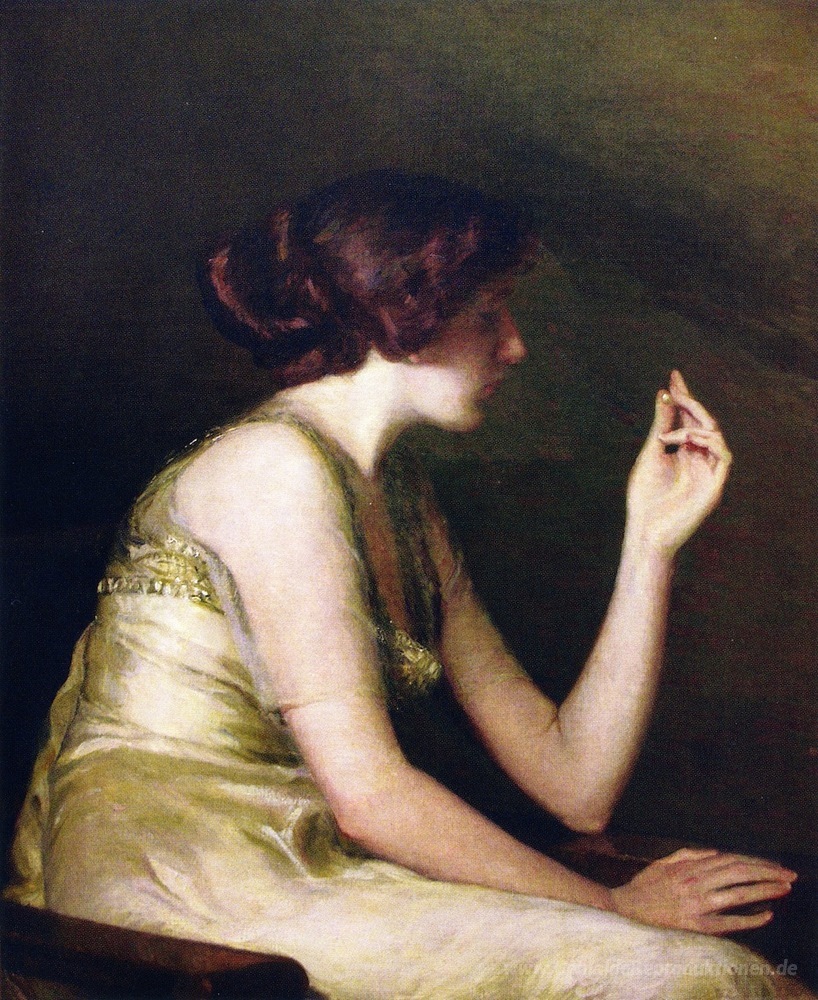 Wir bieten Ihnen eine handgefertigte Reproduktion auf Leinwand des berühmten Kunstwerks 'Die Perle' von Lilla Cabot Perry, aus dem Reproduktionsmuseum.