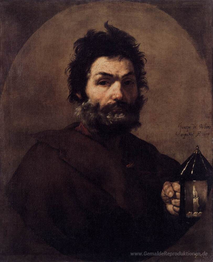 Wir bieten Ihnen eine handgefertigte Reproduktion auf Leinwand des berühmten Kunstwerks 'Diogenes' von Jusepe de Ribera, aus dem Reproduktionsmuseum.