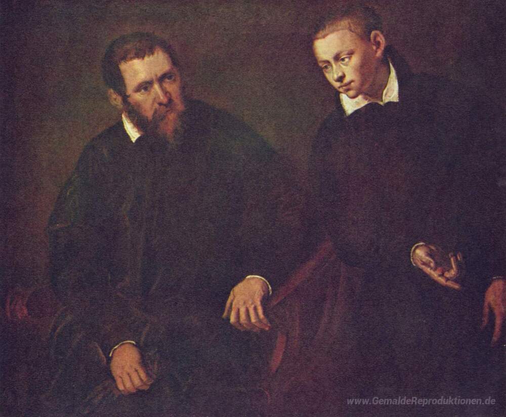 Wir bieten Ihnen eine handgefertigte Reproduktion auf Leinwand des berühmten Kunstwerks 'Doppelporträt zweier Männer' von Tintoretto, aus dem Reproduktionsmuseum.