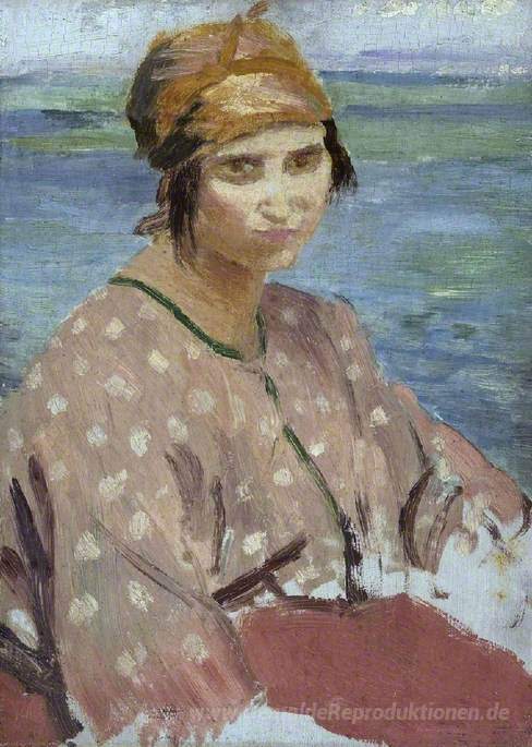 Wir bieten Ihnen eine handgefertigte Reproduktion auf Leinwand des berühmten Kunstwerks 'Dorelia mit Turban' von Augustus John, aus dem Reproduktionsmuseum.