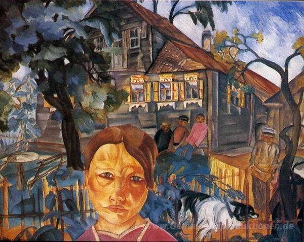 Wir bieten Ihnen eine handgefertigte Reproduktion auf Leinwand des berühmten Kunstwerks 'Dorf' von Boris Grigoriev, aus dem Reproduktionsmuseum.