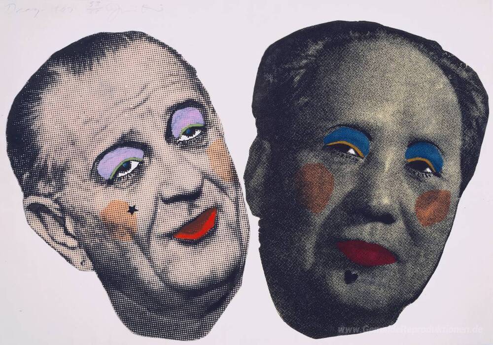Wir bieten Ihnen eine handgefertigte Reproduktion auf Leinwand des berühmten Kunstwerks 'Drag - Johnson und Mao' von Jim Dine, aus dem Reproduktionsmuseum.