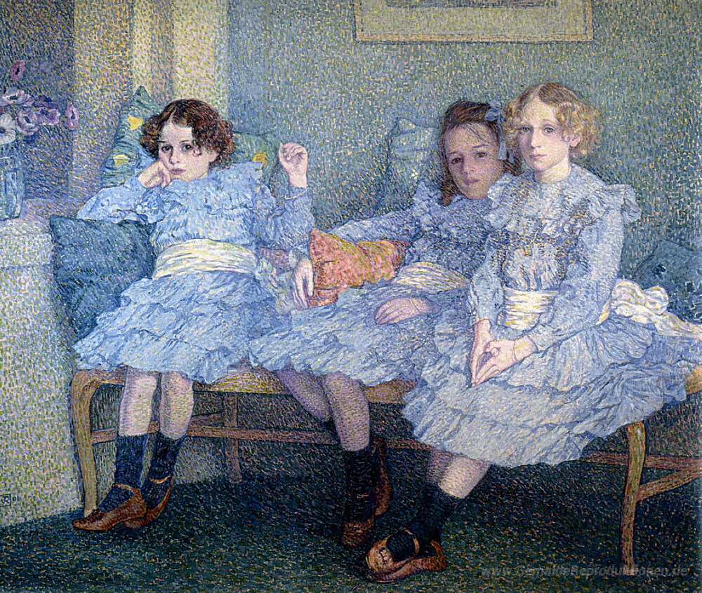 Wir bieten Ihnen eine handgefertigte Reproduktion auf Leinwand des berühmten Kunstwerks 'Drei Kinder in Blue' von Theo van Rysselberghe, aus dem Reproduktionsmuseum.