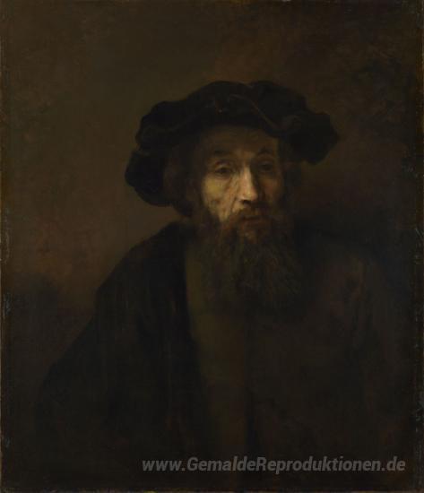 Wir bieten Ihnen eine handgefertigte Reproduktion auf Leinwand des berühmten Kunstwerks 'Ein bärtiger Mann in einem Cap' von Rembrandt, aus dem Reproduktionsmuseum.