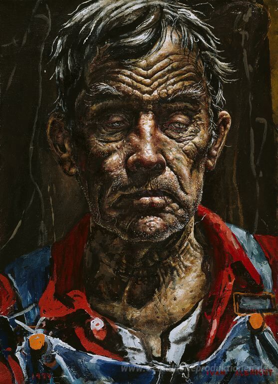 Wir bieten Ihnen eine handgefertigte Reproduktion auf Leinwand des berühmten Kunstwerks 'Ein Gesicht aus Georgien' von Ivan Albright, aus dem Reproduktionsmuseum.