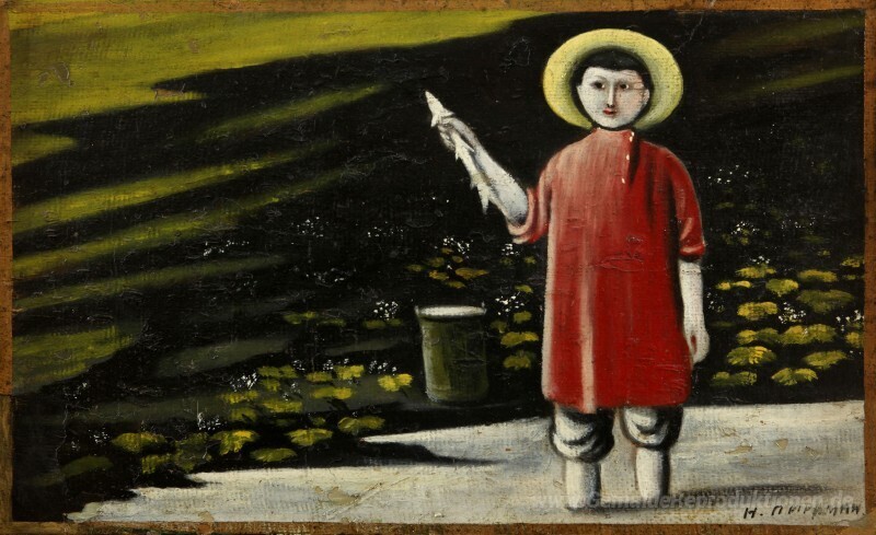 Wir bieten Ihnen eine handgefertigte Reproduktion auf Leinwand des berühmten Kunstwerks 'Ein junger Fischer' von Niko Pirosmani, aus dem Reproduktionsmuseum.