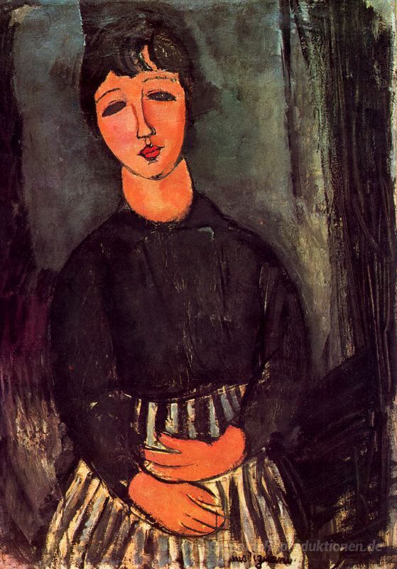Wir bieten Ihnen eine handgefertigte Reproduktion auf Leinwand des berühmten Kunstwerks 'Ein junges Mädchen,' von Amedeo Modigliani, aus dem Reproduktionsmuseum.