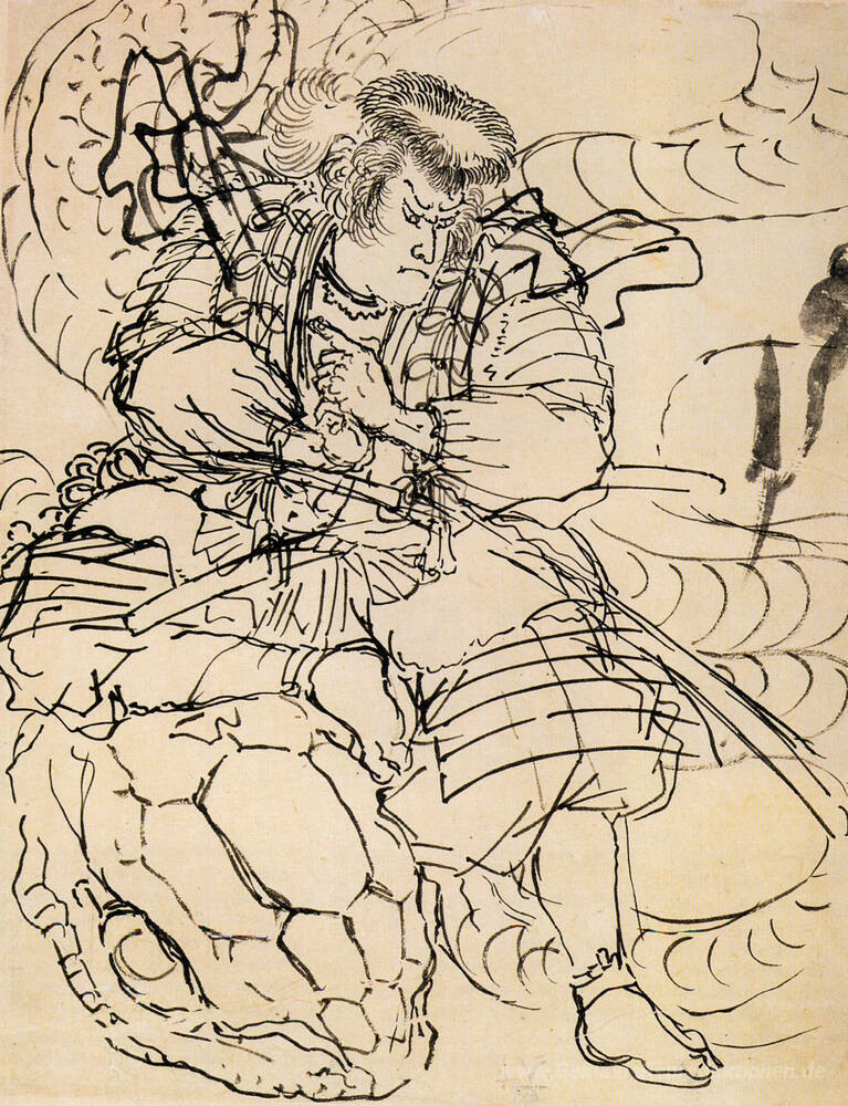 Wir bieten Ihnen eine handgefertigte Reproduktion auf Leinwand des berühmten Kunstwerks 'Ein Samurai überwältigend eine Riesenschlange' von Utagawa Kuniyoshi, aus dem Reproduktionsmuseum.