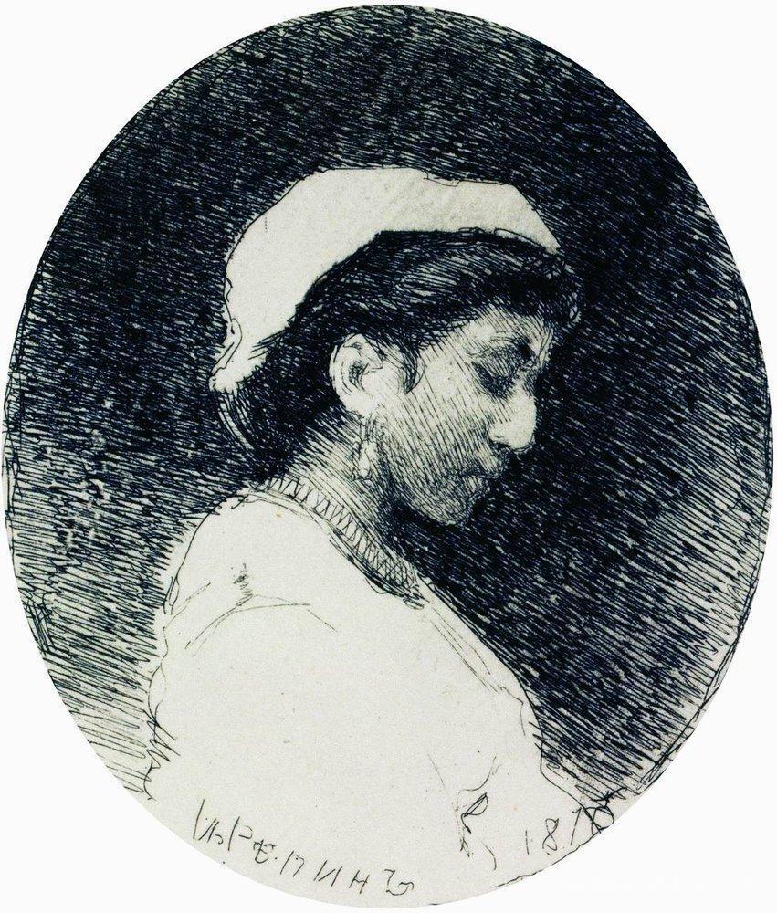 Wir bieten Ihnen eine handgefertigte Reproduktion auf Leinwand des berühmten Kunstwerks 'Eine Frau in einer Kappe' von Ilya Repin, aus dem Reproduktionsmuseum.
