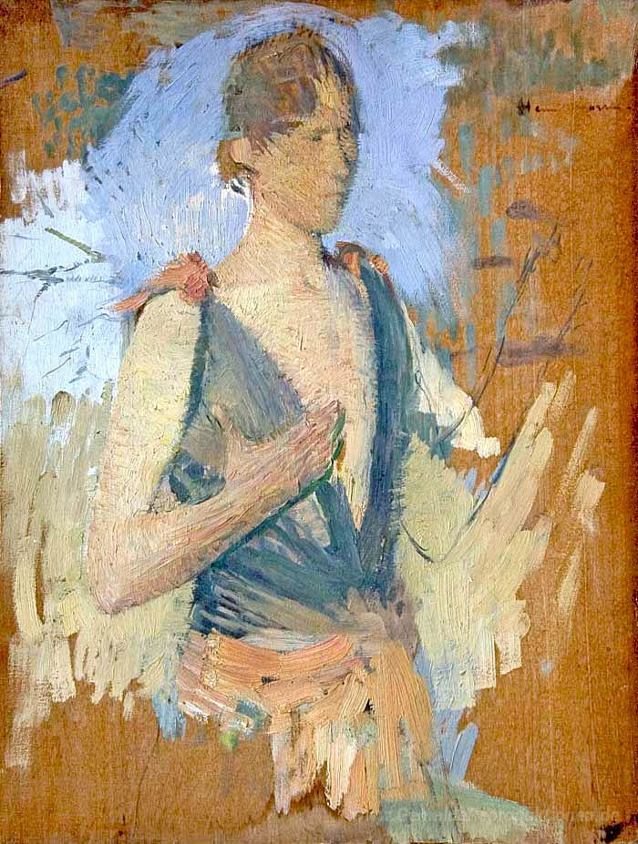 Wir bieten Ihnen eine handgefertigte Reproduktion auf Leinwand des berühmten Kunstwerks 'Eine Junge Frau' von Henri Martin, aus dem Reproduktionsmuseum.