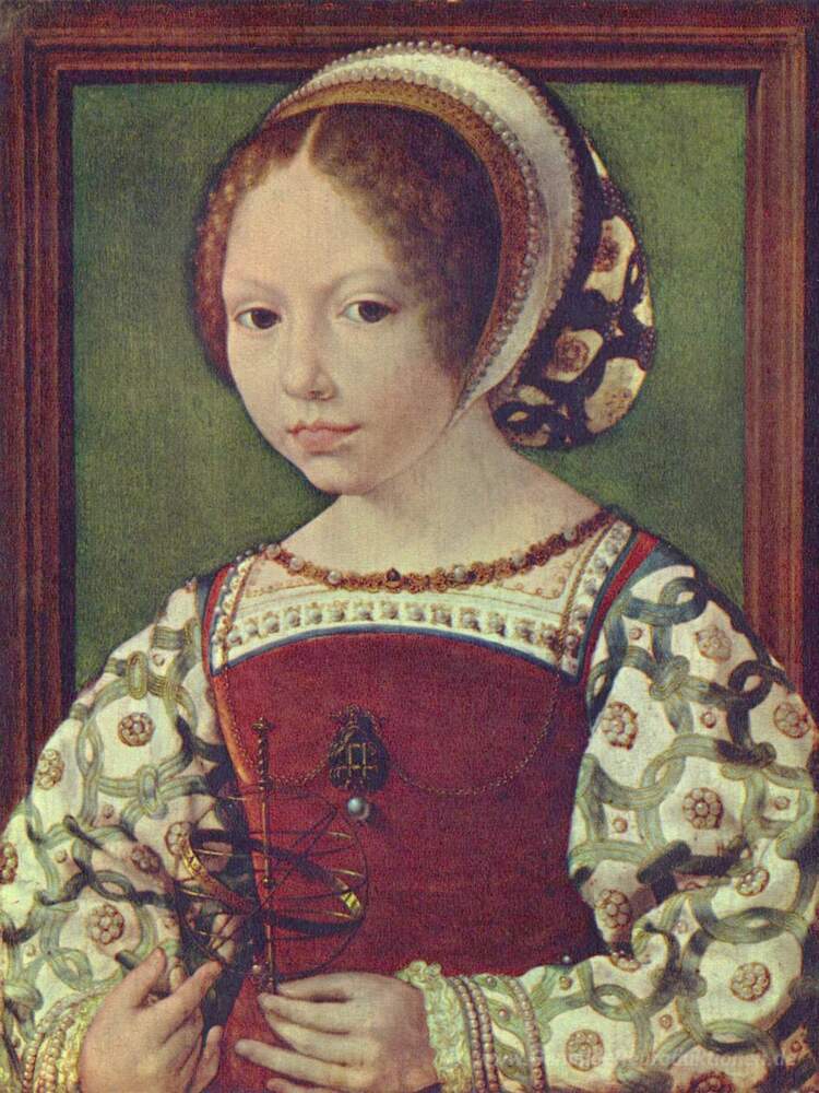 Wir bieten Ihnen eine handgefertigte Reproduktion auf Leinwand des berühmten Kunstwerks 'Eine junge Prinzessin (Dorothea von Denmark0)' von Mabuse, aus dem Reproduktionsmuseum.
