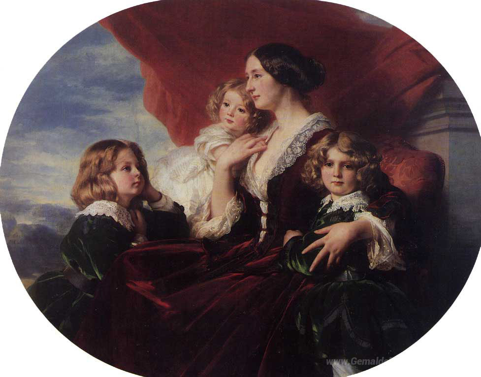 Wir bieten Ihnen eine handgefertigte Reproduktion auf Leinwand des berühmten Kunstwerks 'Elzbieta Branicka, Gräfin Krasinka und ihre Kinder' von Franz Xaver Winterhalter, aus dem Reproduktionsmuseum.