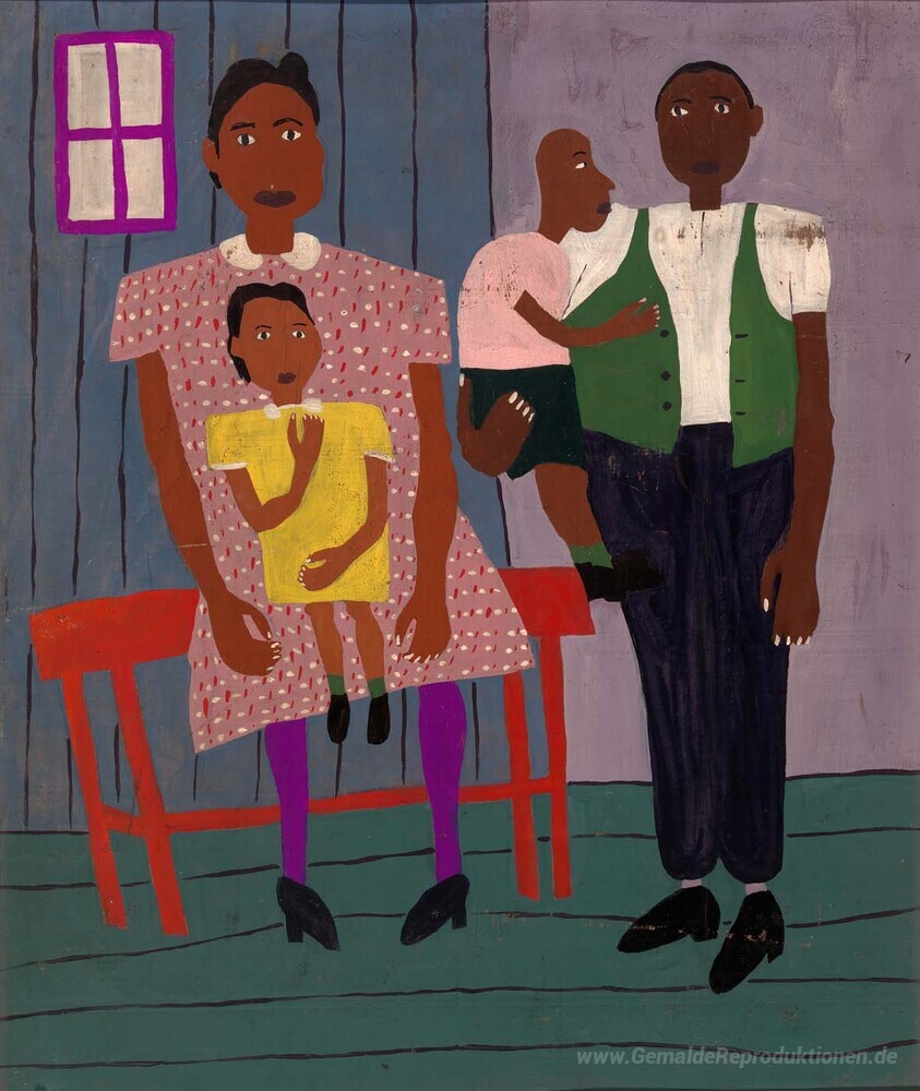 Wir bieten Ihnen eine handgefertigte Reproduktion auf Leinwand des berühmten Kunstwerks 'Familienfoto' von William H. Johnson, aus dem Reproduktionsmuseum.
