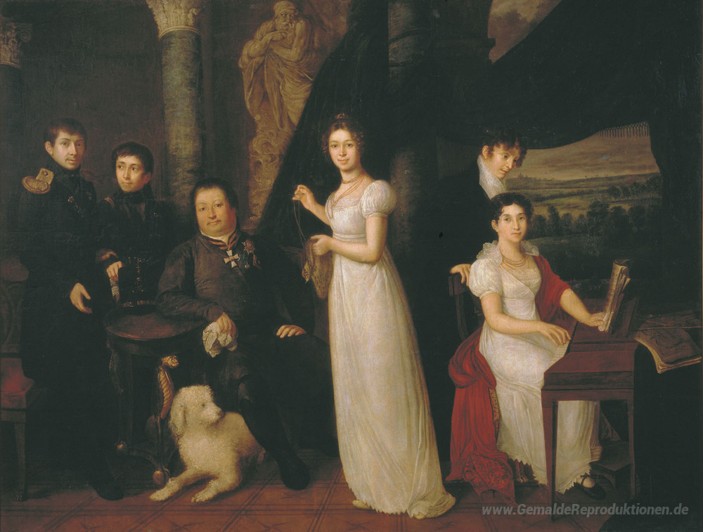 Wir bieten Ihnen eine handgefertigte Reproduktion auf Leinwand des berühmten Kunstwerks 'Family Portrait von Zählungen Morkovs' von Vasily Tropinin, aus dem Reproduktionsmuseum.