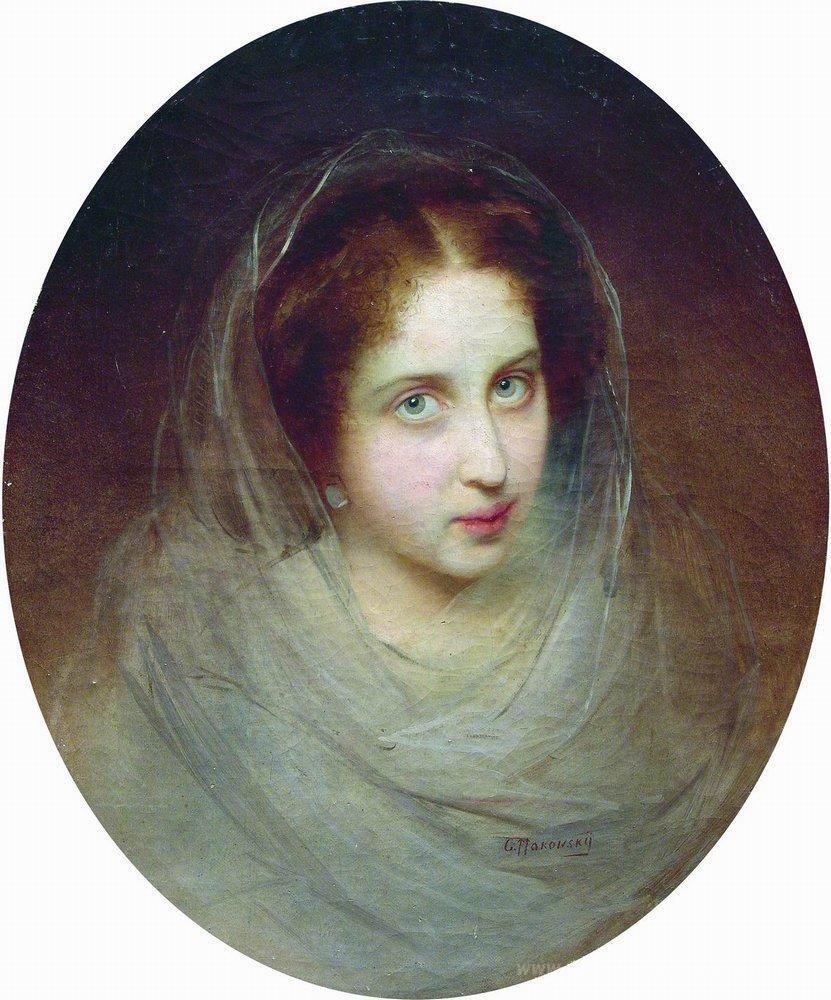 Wir bieten Ihnen eine handgefertigte Reproduktion auf Leinwand des berühmten Kunstwerks 'Female Portrait' von Konstantin Makovsky, aus dem Reproduktionsmuseum.