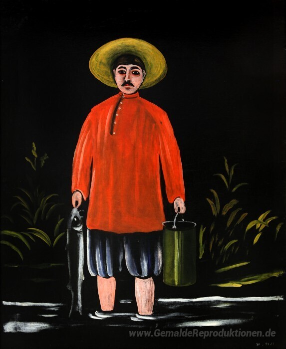 Wir bieten Ihnen eine handgefertigte Reproduktion auf Leinwand des berühmten Kunstwerks 'Fisherman in einem roten Hemd' von Niko Pirosmani, aus dem Reproduktionsmuseum.