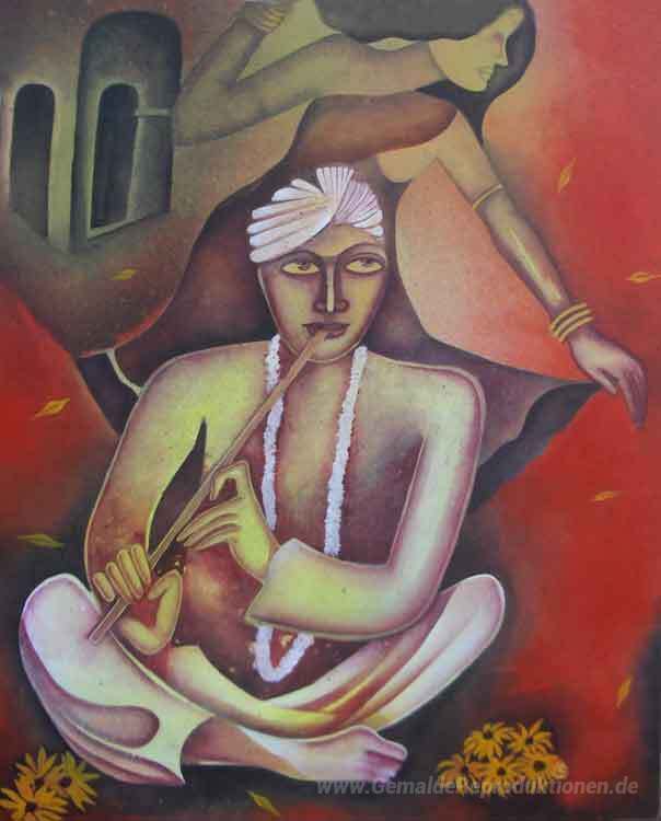 Wir bieten Ihnen eine handgefertigte Reproduktion auf Leinwand des berühmten Kunstwerks 'Flötist' von Jahar Dasgupta, aus dem Reproduktionsmuseum.