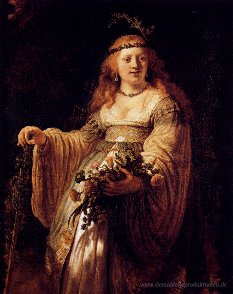 Wir bieten Ihnen eine handgefertigte Reproduktion auf Leinwand des berühmten Kunstwerks 'Flora' von Rembrandt, aus dem Reproduktionsmuseum.