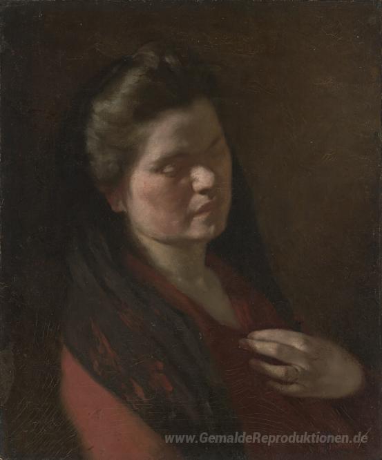 Wir bieten Ihnen eine handgefertigte Reproduktion auf Leinwand des berühmten Kunstwerks 'Frau des Künstlers' von Max Meldrum, aus dem Reproduktionsmuseum.
