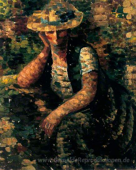 Wir bieten Ihnen eine handgefertigte Reproduktion auf Leinwand des berühmten Kunstwerks 'Frau in einem Strohhut' von Roger Bissière, aus dem Reproduktionsmuseum.