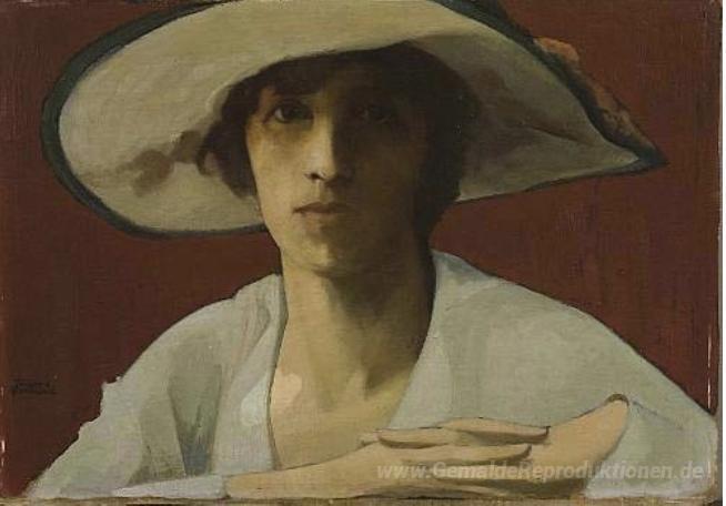 Wir bieten Ihnen eine handgefertigte Reproduktion auf Leinwand des berühmten Kunstwerks 'Frau in Weiß' von Theophrastos Triantafyllidis, aus dem Reproduktionsmuseum.