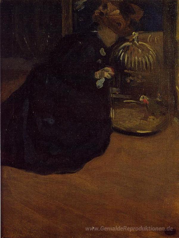 Wir bieten Ihnen eine handgefertigte Reproduktion auf Leinwand des berühmten Kunstwerks 'Frau mit einem Parakeet' von Mary Cassatt, aus dem Reproduktionsmuseum.