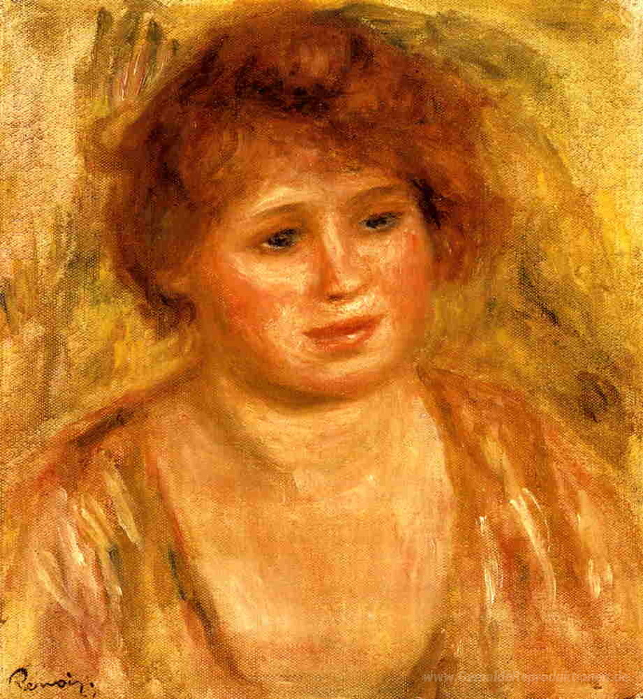 Wir bieten Ihnen eine handgefertigte Reproduktion auf Leinwand des berühmten Kunstwerks 'Frau `s Kopf' von Pierre-Auguste Renoir, aus dem Reproduktionsmuseum.