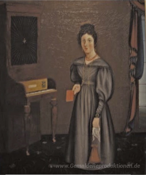 Wir bieten Ihnen eine handgefertigte Reproduktion auf Leinwand des berühmten Kunstwerks 'Frau vor einem Pianoforte' von John Bradley, aus dem Reproduktionsmuseum.