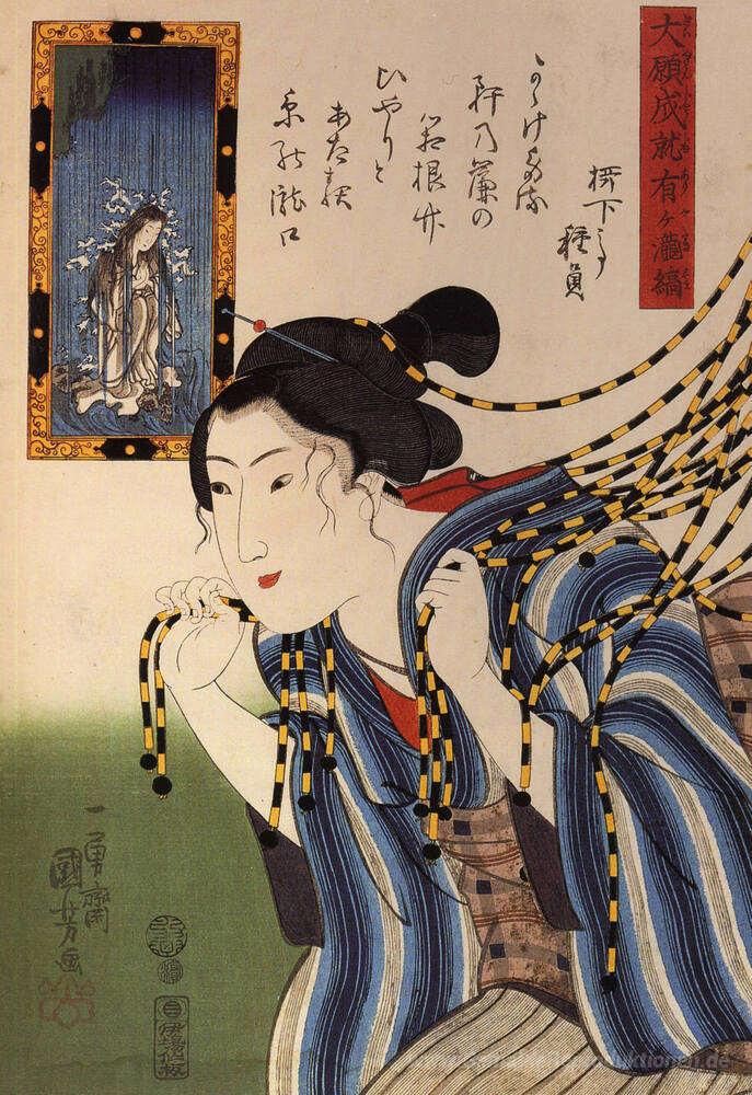 Wir bieten Ihnen eine handgefertigte Reproduktion auf Leinwand des berühmten Kunstwerks 'Frau walkin throught einem noren' von Utagawa Kuniyoshi, aus dem Reproduktionsmuseum.