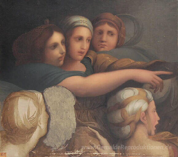 Wir bieten Ihnen eine handgefertigte Reproduktion auf Leinwand des berühmten Kunstwerks 'Frauengruppe' von Jean Auguste Dominique Ingres, aus dem Reproduktionsmuseum.