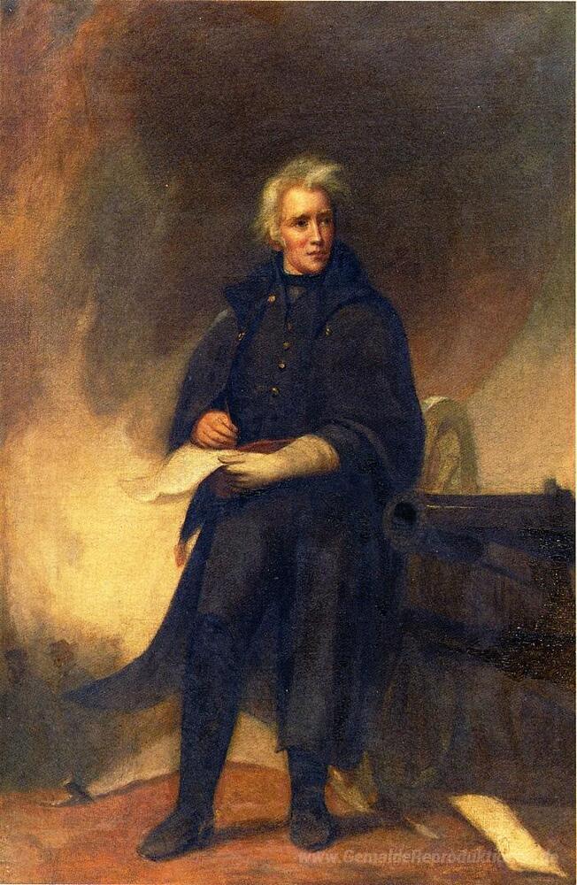 Wir bieten Ihnen eine handgefertigte Reproduktion auf Leinwand des berühmten Kunstwerks 'General Jackson nach der Schlacht von New Orleans' von Thomas Sully, aus dem Reproduktionsmuseum.