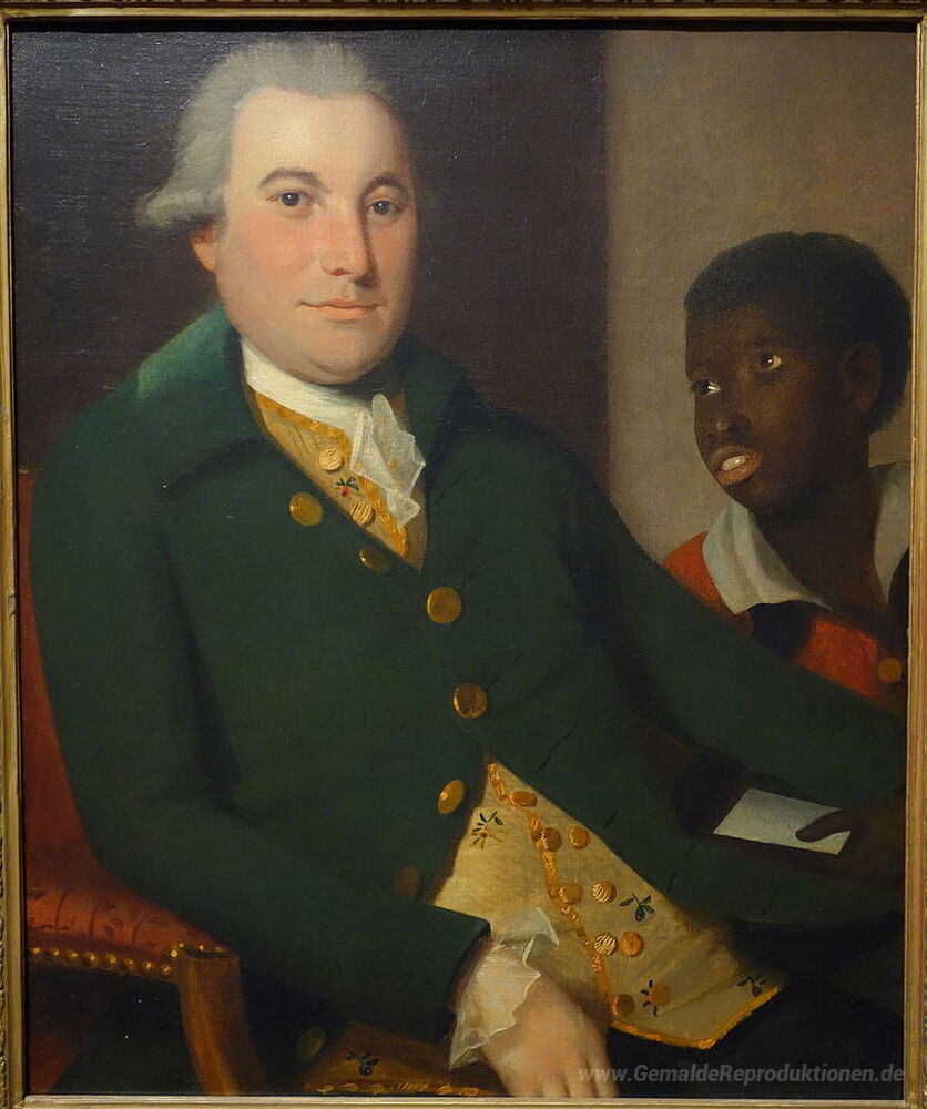 Wir bieten Ihnen eine handgefertigte Reproduktion auf Leinwand des berühmten Kunstwerks 'Gentleman mit Attendant' von Ralph Earl, aus dem Reproduktionsmuseum.