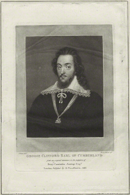 Wir bieten Ihnen eine handgefertigte Reproduktion auf Leinwand des berühmten Kunstwerks 'George Clifford, 3. Earl of Cumberland' von Charles Turner, aus dem Reproduktionsmuseum.
