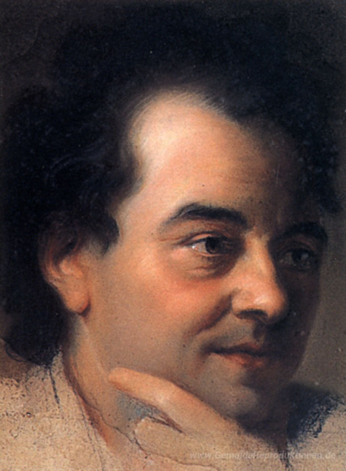 Wir bieten Ihnen eine handgefertigte Reproduktion auf Leinwand des berühmten Kunstwerks 'Gesicht des Mannes, nachdem Alexis Grimou' von Maurice Quentin de La Tour, aus dem Reproduktionsmuseum.