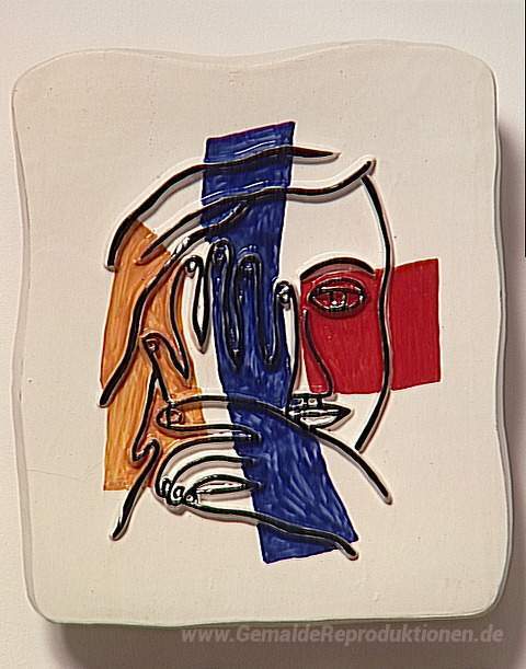 Wir bieten Ihnen eine handgefertigte Reproduktion auf Leinwand des berühmten Kunstwerks 'Gesicht mit beiden Händen' von Fernand Leger, aus dem Reproduktionsmuseum.