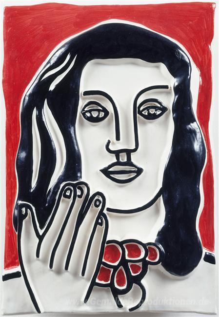 Wir bieten Ihnen eine handgefertigte Reproduktion auf Leinwand des berühmten Kunstwerks 'Gesicht mit der Hand auf einem roten Hintergrund' von Fernand Leger, aus dem Reproduktionsmuseum.