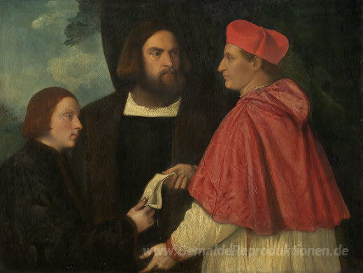 Wir bieten Ihnen eine handgefertigte Reproduktion auf Leinwand des berühmten Kunstwerks 'Girolamo und Kardinal Marco Corner Investitionen Marco, Abt von ' von Titian, aus dem Reproduktionsmuseum.