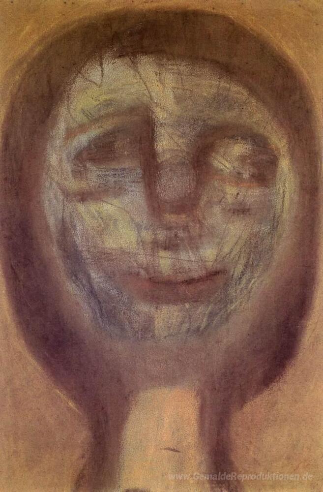 Wir bieten Ihnen eine handgefertigte Reproduktion auf Leinwand des berühmten Kunstwerks 'Grün Clown Maske' von Vajda Lajos, aus dem Reproduktionsmuseum.