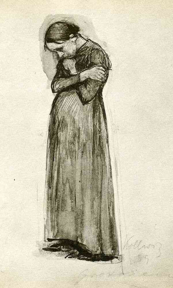 Wir bieten Ihnen eine handgefertigte Reproduktion auf Leinwand des berühmten Kunstwerks 'Gretchen' von Kathe Kollwitz, aus dem Reproduktionsmuseum.